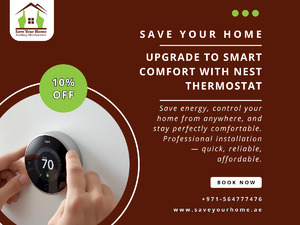 Professional Nest Thermostat installation by Save Your Home. Save energy, stay comfortable, and control your home climate from anywhere. Book now! Visit our website at www.saveyourhome.ae